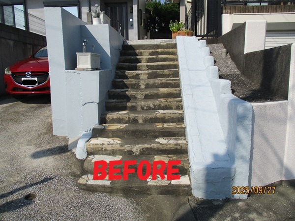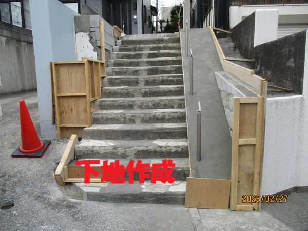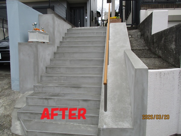 建物から道路に降りる階段とスロープが劣化してセメントや塗装が剝げてきていました。