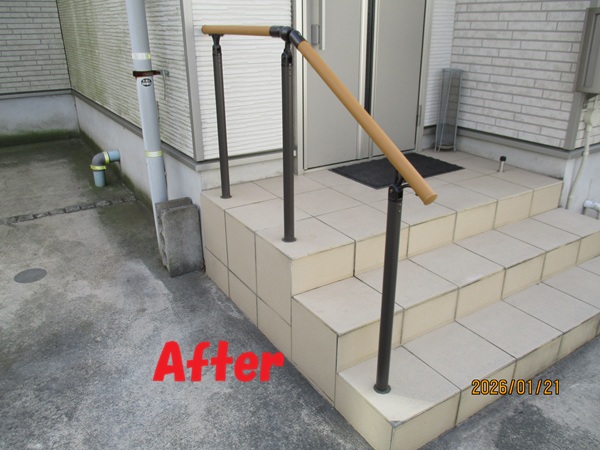 ①玄関ポーチに介護保険を使っての手すりを設置。