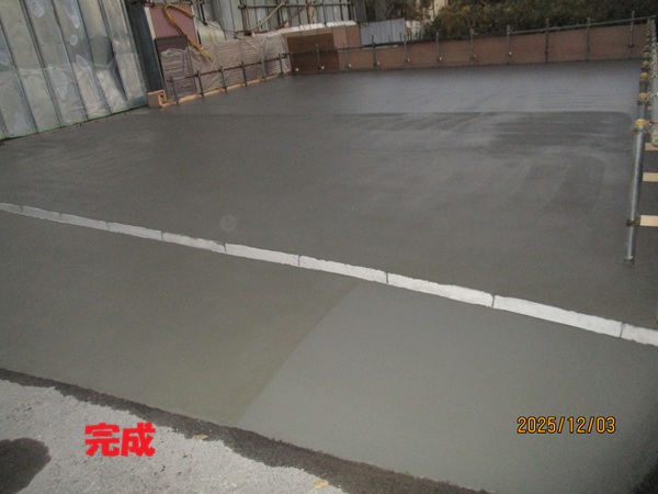コンクリートを打ち込みました。40坪近くありなかなか広い敷地でした。
