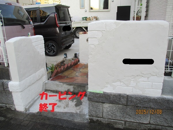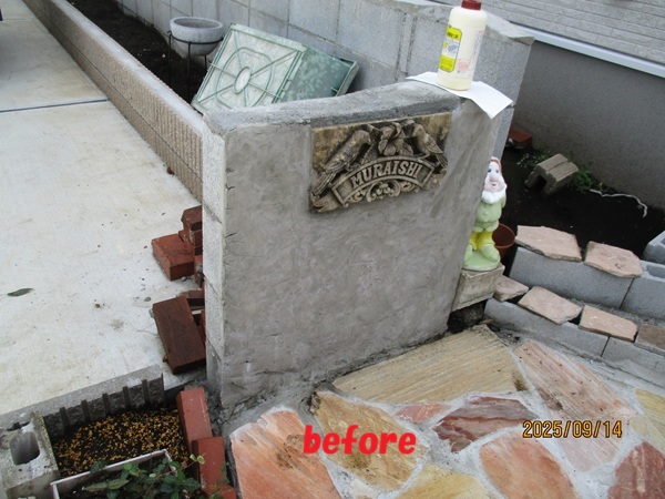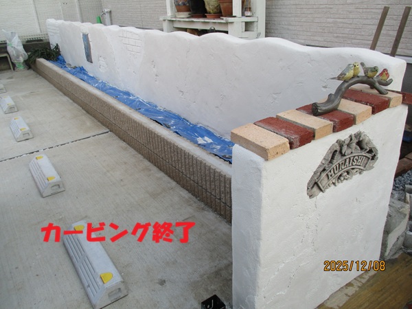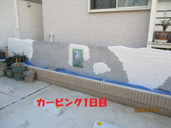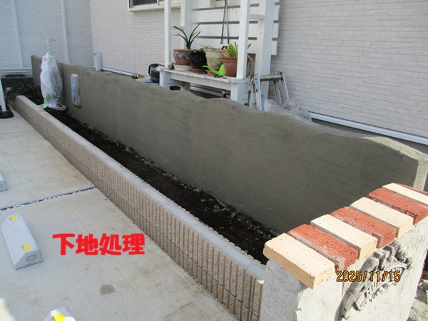 レンガ&プラスター風の塀をモルタル造形で施工中です。